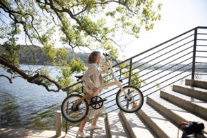 万が一に備えたGPS盗難防止システム搭載。軽量カーボンフレーム採用の折り畳み電動アシスト自転車。