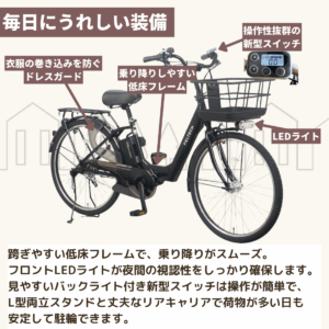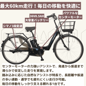 通勤・通学・日常使いにフォーカスしたハイパワーモーター搭載電動アシスト自転車モデル。